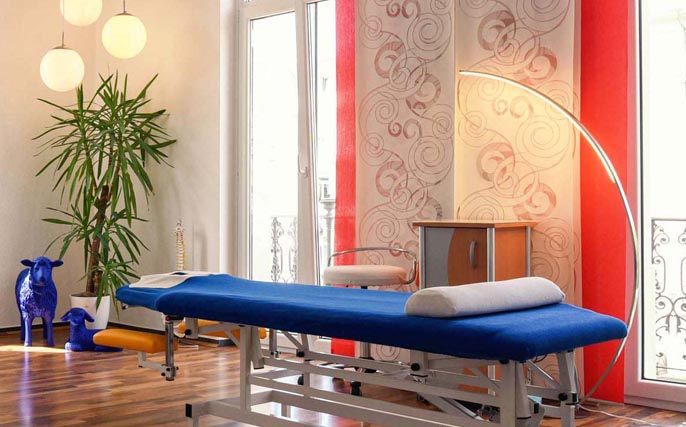 In unserer zentral gelegenen, modernen Praxis erwarten Sie großzügige und geschmackvoll eingerichtete Behandlungsräume, die nicht nur für eine angenehme Atmosphäre sorgen, sondern auch beste Voraussetzungen für eine umfassende und wirkungsvolle Therapie schaffen. Dank unserer hervorragenden Lage sind wir sowohl mit dem Auto als auch mit öffentlichen Verkehrsmitteln schnell und unkompliziert erreichbar.